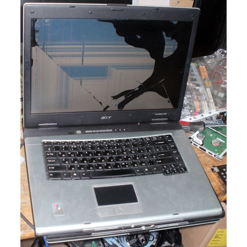 ДЕФЕКТНЫЙ НЕДОУКОМПЛЕКТОВАННЫЙ ноутбук Acer TravelMate 2410 (2413WLC) (Intel Celeron M370 1.5Ghz /no RAM! /no HDD! /DVD-CDRW /sound /LAN /15.4" TFT 1280x800)